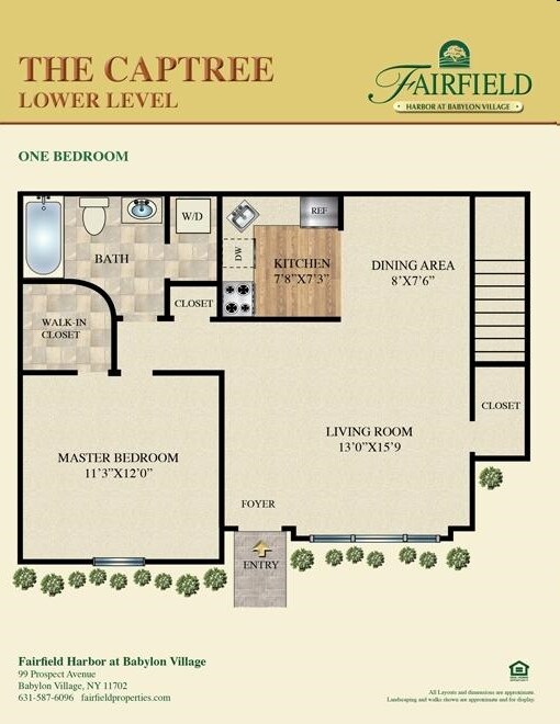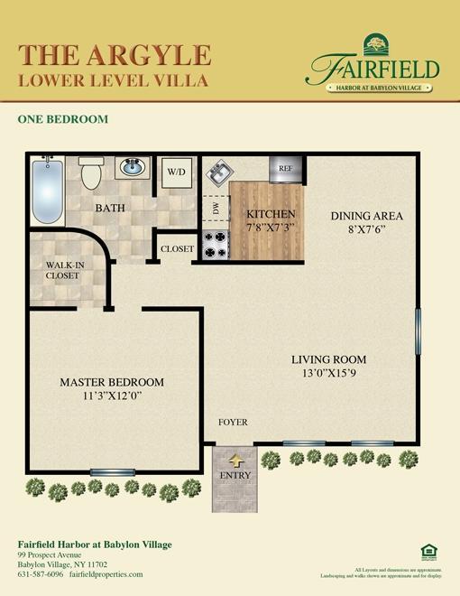 Fairfield Harbor At Babylon Village is an outstanding 55 And Over community. Located in the charming residentional location of Babylon Village just South of Montauk Highway and adjacent to the lovely canal views on Willow Street. Everything with in reach as you can walk to Babylon Village, Argyle Park and the Babylon LIRR station. Great restaurants and village shopping. One and two bedrooms, some Villa style. Our beautifully renovated One bedroom apartment homes have lovely Tuscany-style cabinetry, stainless steel applicances, ceramic tile, crown and base molding, two-tone paint, air conditioning, ceiling fan, plush carpeting features. Private entry, paver walkways, courtyard bench seating and outstanding new landscaping.