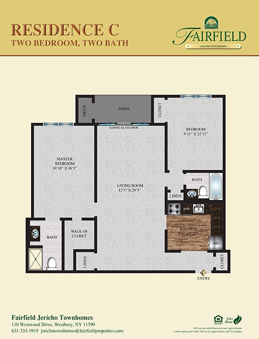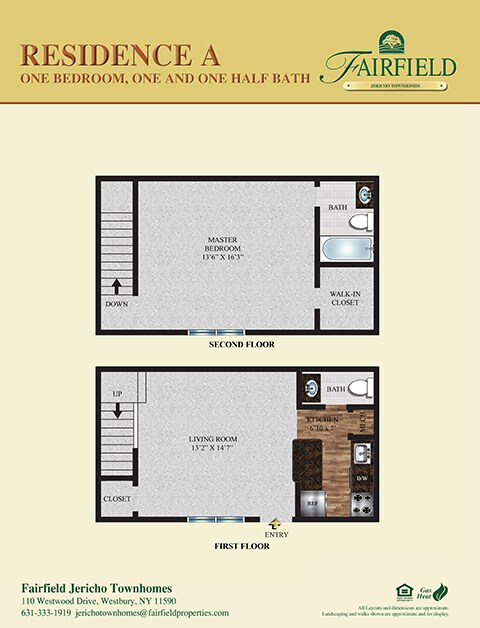 Fairfield Jericho Townhomes in Westbury, NY. Jericho School District rated #1 by Niche Survey! Luxury and spacious 1-bedroom townhomes, -2 and 3-bedroom apartment residences. Outstanding new interior renovations feature kitchen quartz counter/back-splash, shaker style white cabinets with under-mount lights/brushed nickel hardware. Plank tile kitchen floor. Living space with Stonington gray paint, some gray premium plush carpeting, some with vinyl plank flooring. Crown/base molding. Two-inch faux wood window treatments, central air, customizable walk-in closets. Outdoor pool with sundeck and clubhouse with fitness center.