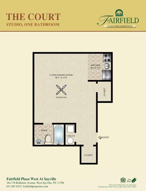 Fairfield Plaza West At West Sayville offers Studio to 2 Bedroom apartments starting from $2,000 and having 478–675 sq ft. Here is the current pricing and availability: