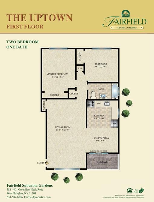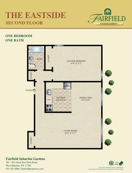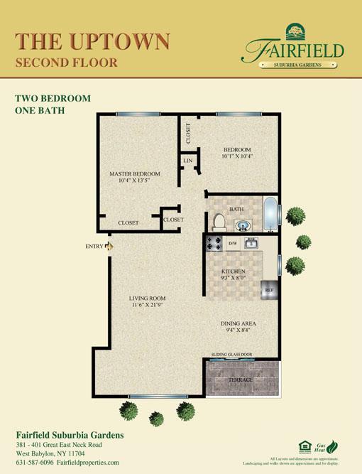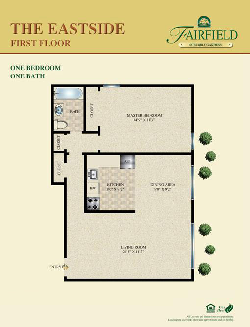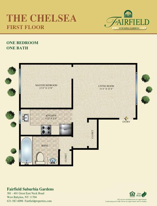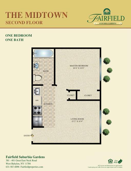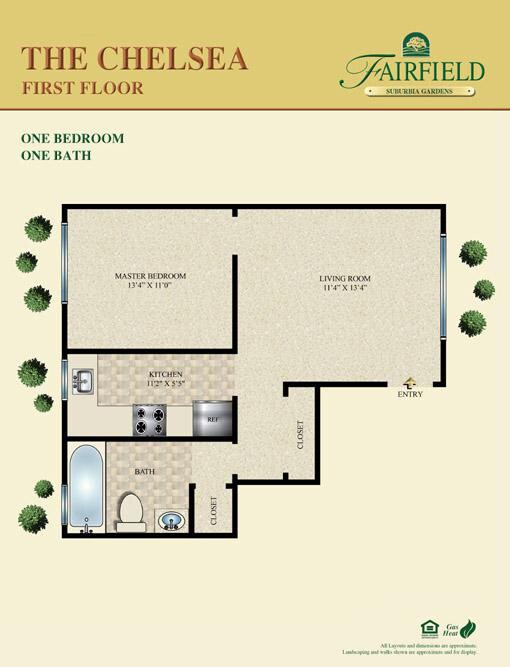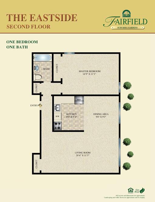 Fairfield At Suburbia-a convenient -one and -two bedroom apartment community. Professionally landscaped. Kitchen with tuscany style cabinetry, stainless steel appliances, granite countertops, air-conditioning, crown molding, ceramic tile bath. Some with vinyl plank flooring or gray plush carpet. Heat and hot water included in the rent.