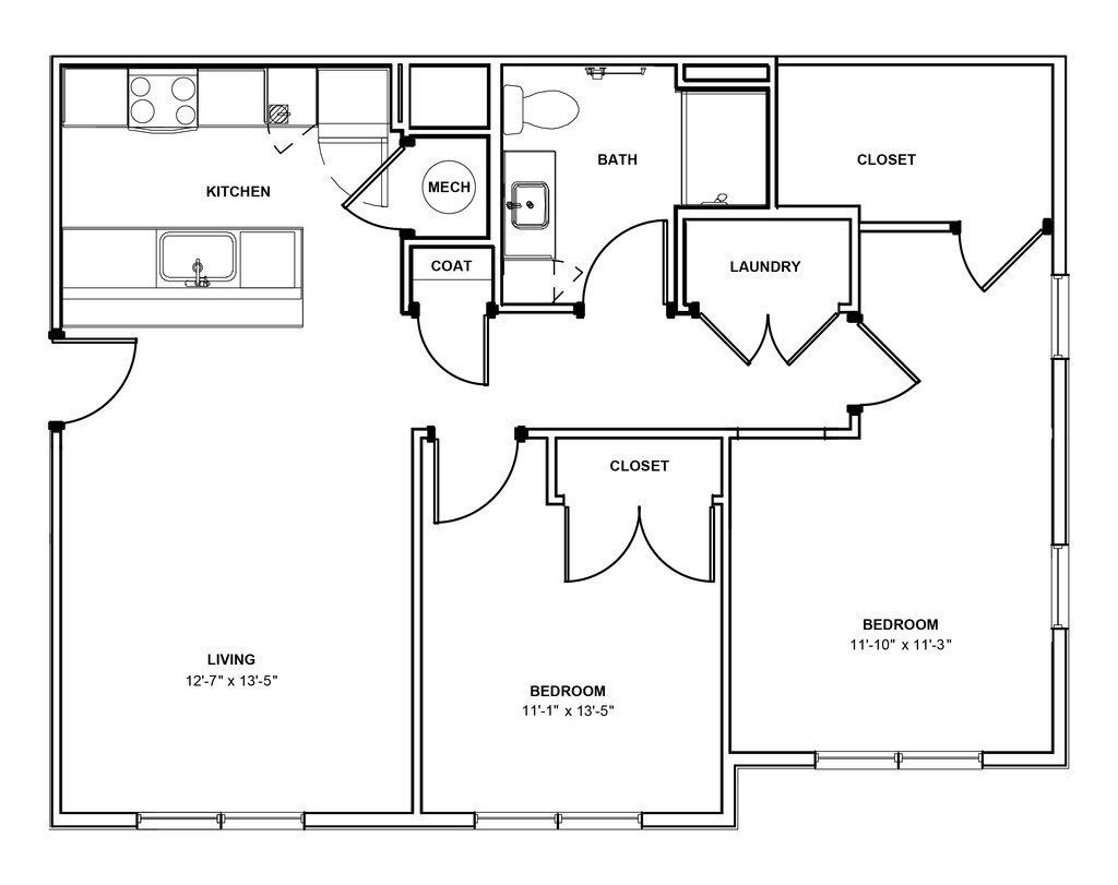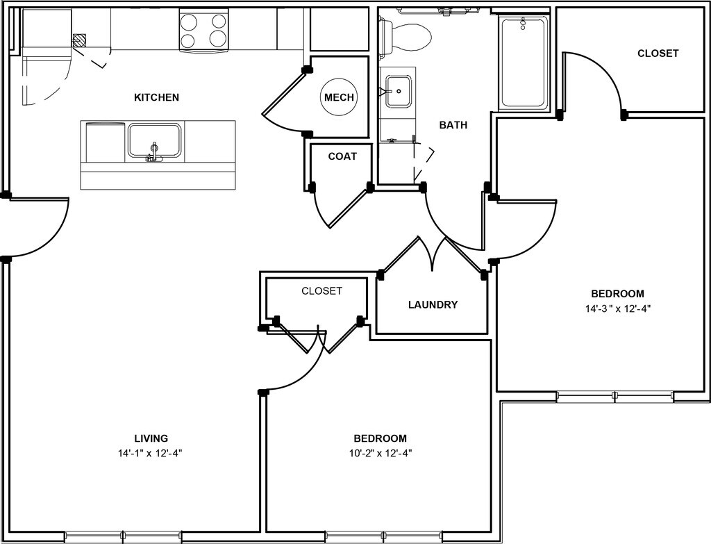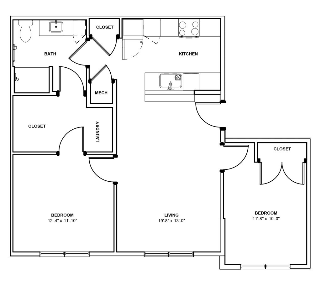2 Beds, 1 Bath, 976 sq ftLargest 2 BedroomThis is the largest 2 Bedroom at this PropertyModel Gallery