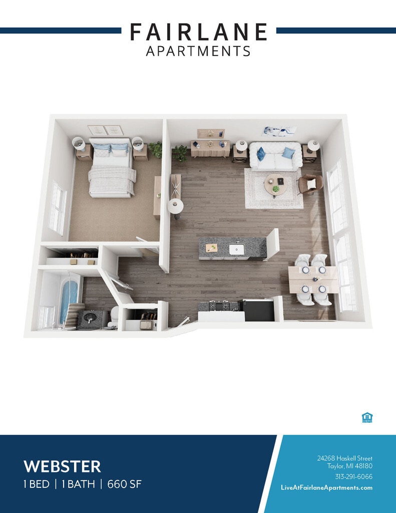 Apartment Model: FL1From $9301 Bedroom, 1 Bath, 660 sq ftAvailable Now![]()