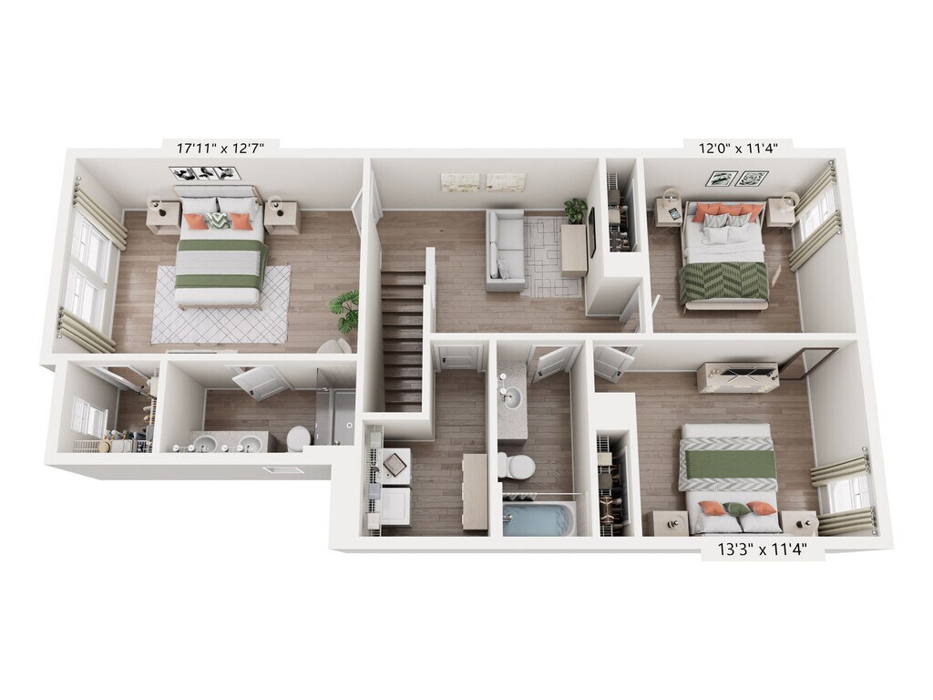 3 Beds, 2.5 Baths, 1816 sq ftAvailable NowLargest 3 BedroomThis is the largest 3 Bedroom at this PropertyModel Gallery