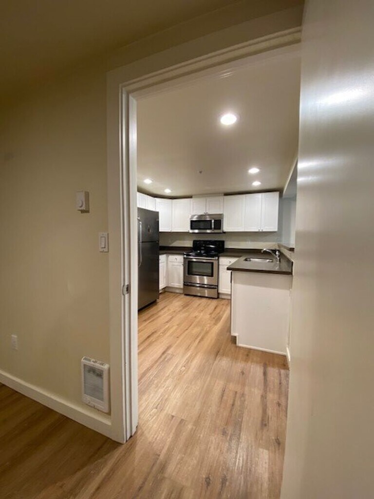 This spacious, beautiful, renovated apartment is located on the second floor, corner unit of a charming early 1900s building on a quiet residential street. The building and apartment have been fully renovated, all while keeping the original features of the building intact. The apartment has wood and tile floors throughout . The entire apartment features high ceilings and lots of large windows, including a bay window.. The fully renovated kitchen features new counter tops, wood floors, and new appliances, including a microwave. Plenty of cabinets provide lots of storage space.