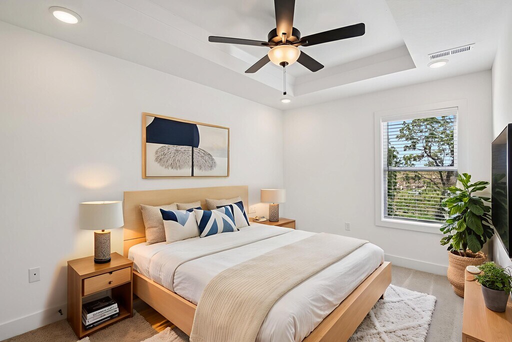 Generously sized primary suite with attached bath and walk-in closet. Full second bathroom and hallway linen storage