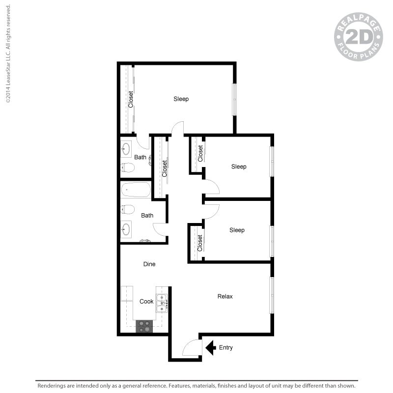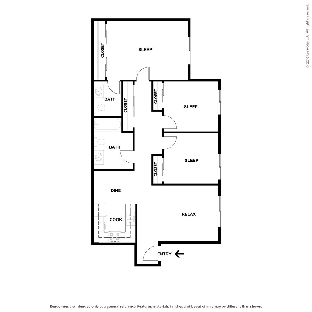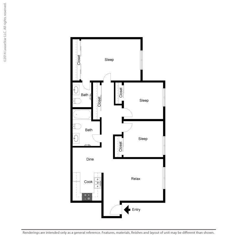 Medium 2 Bed 1 Bath - Floorplan 5 Apartment Unit: 204Apartment Model: Medium 2 Bed 1 Bath$3,0402 Bedroom, 1 Bath, 850 sq ftAvailable Now3 Bedrooms