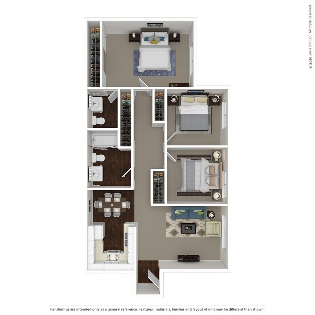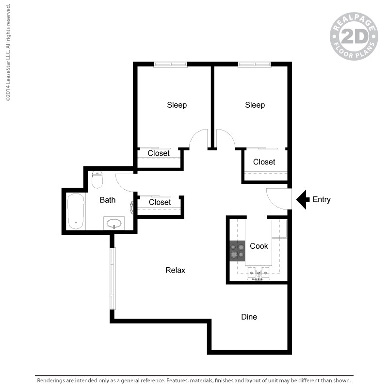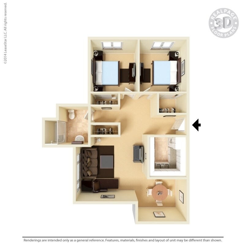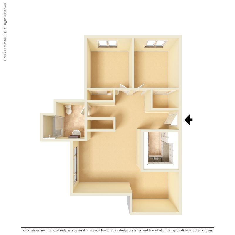 Medium 1 Bed 1 Bath - Floorplan 8 2 Bedrooms