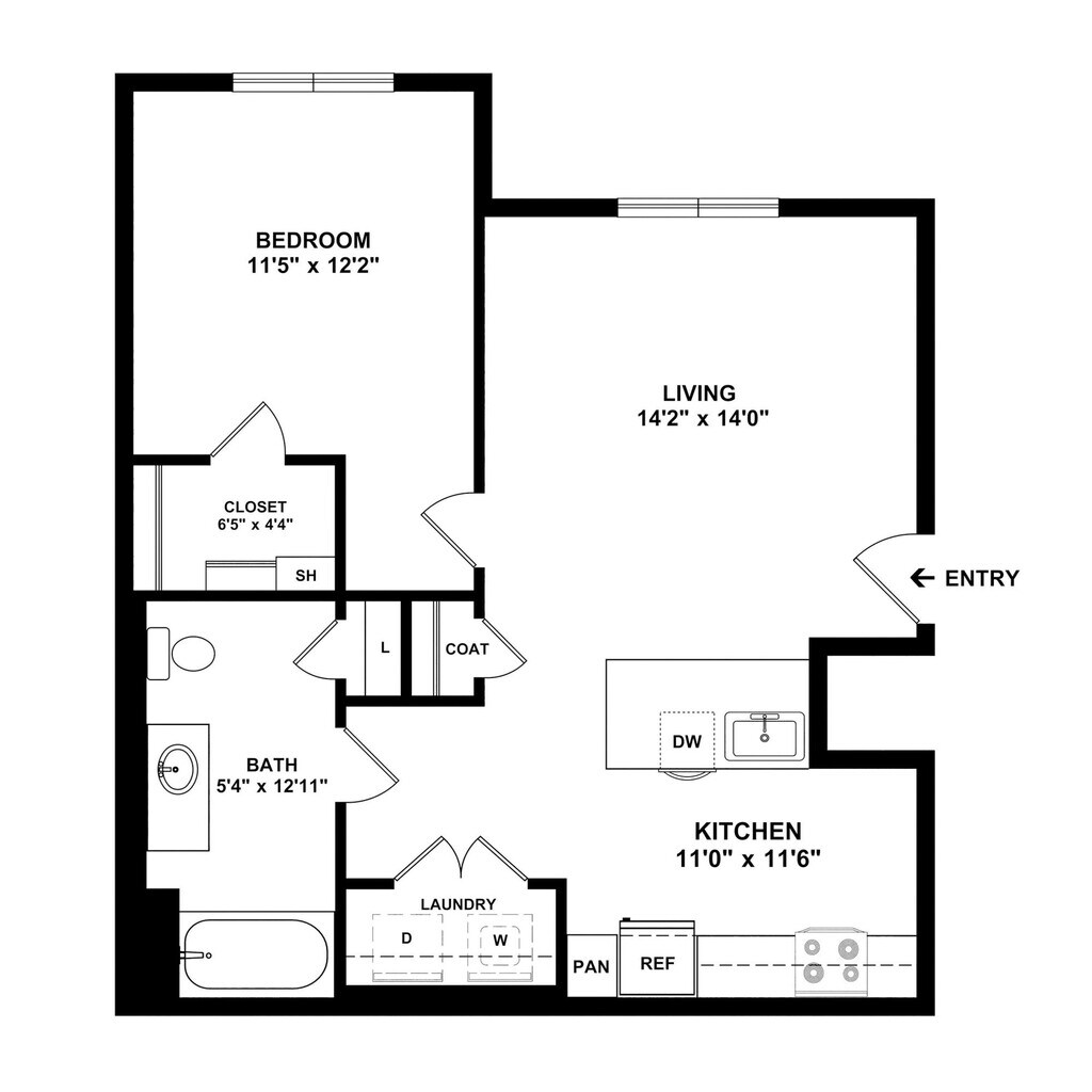 1 Bed 1 Bath - Floorplan 1 ![]()