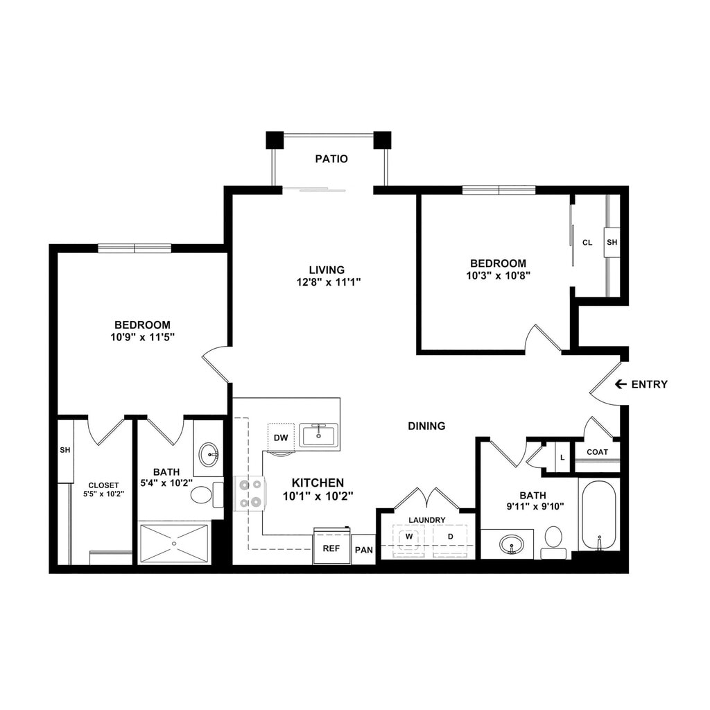 1 Bed 1 Bath - Floorplan 4 2 Bedrooms