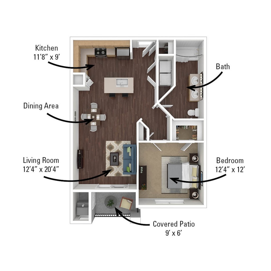 1 Bed, 1 Bath, 809-822 sq ftAvailable NowModel Gallery