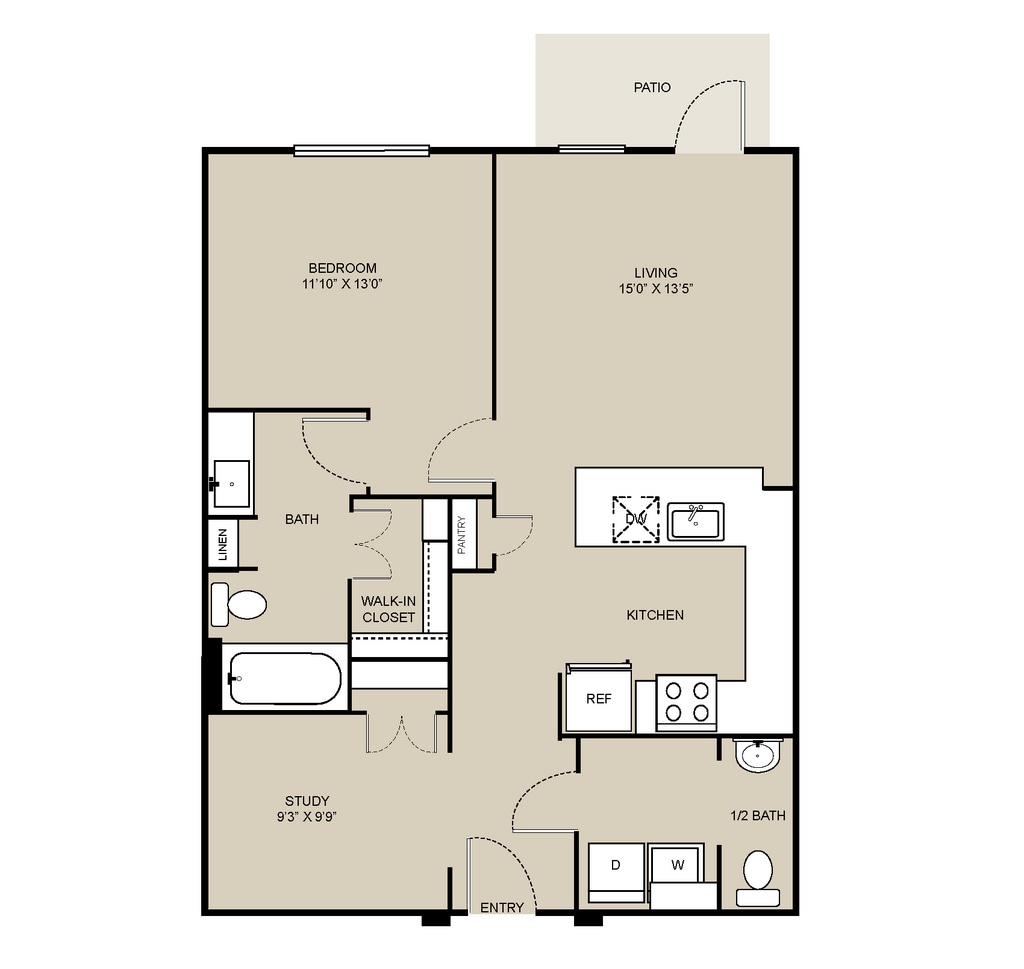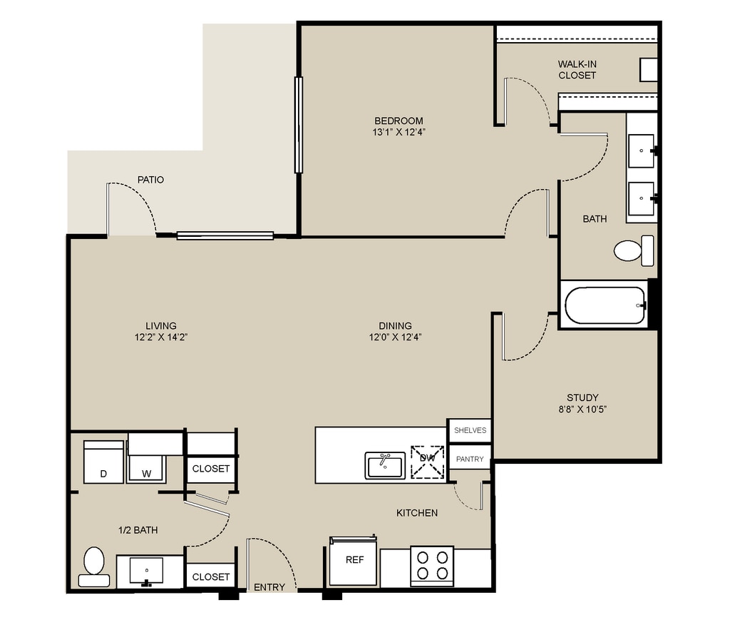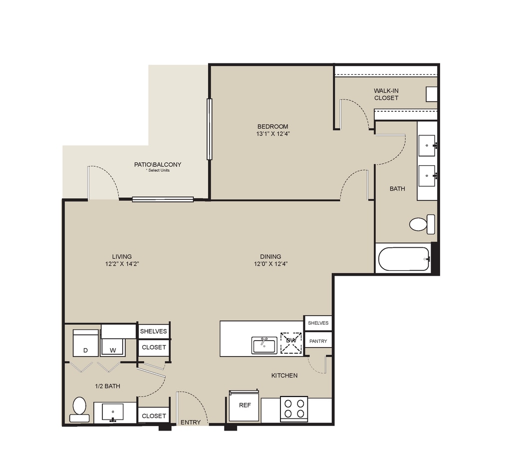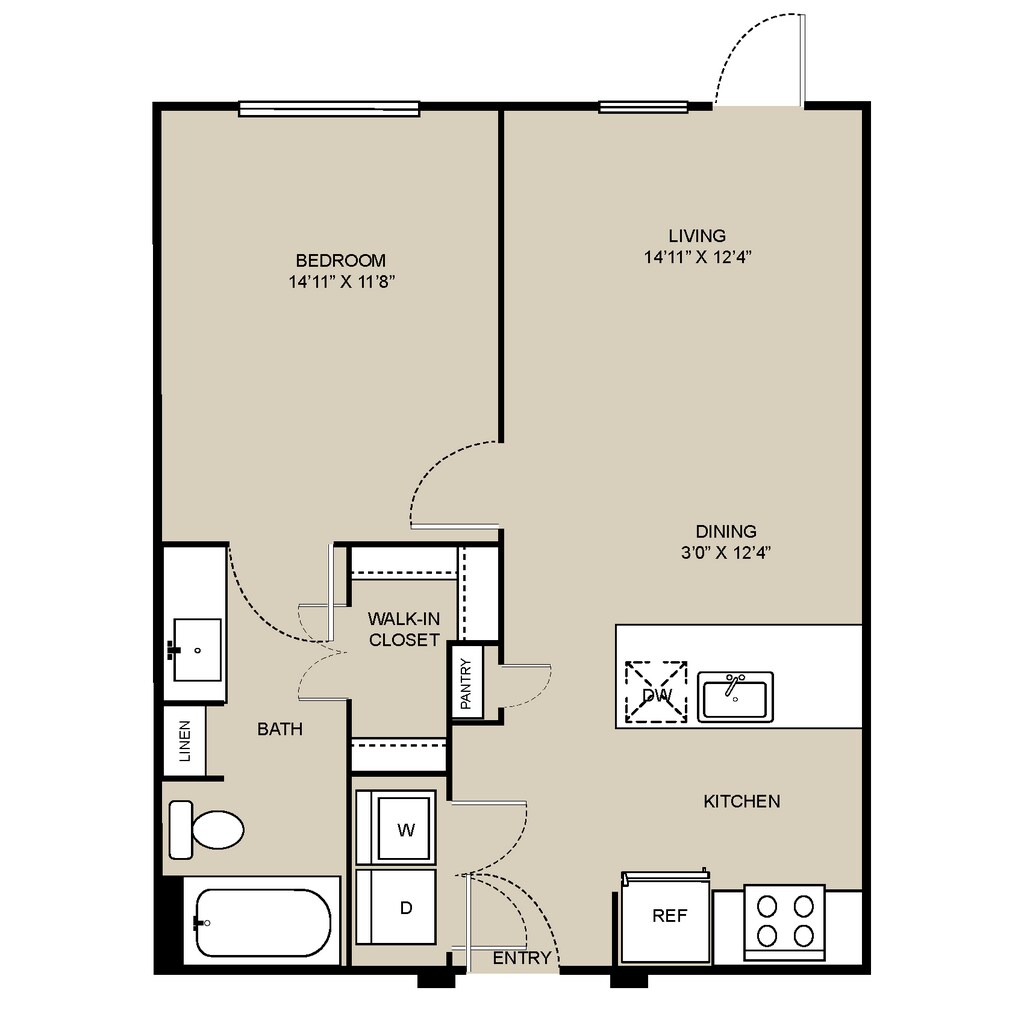 Studio, 1 Bath, 328-416 sq ftAvailable NowModel Gallery