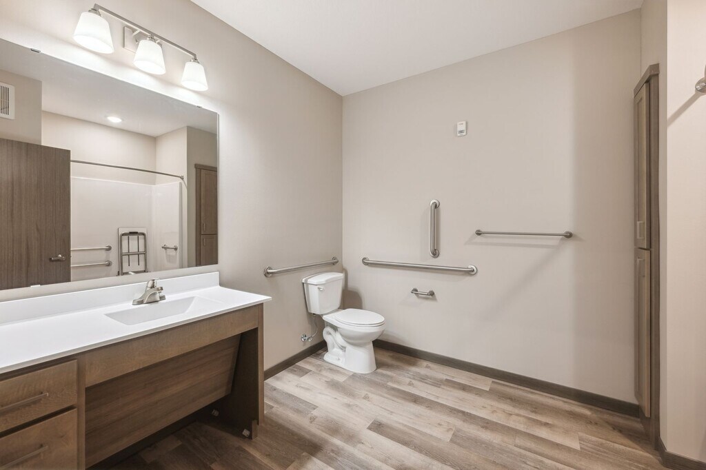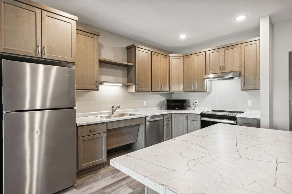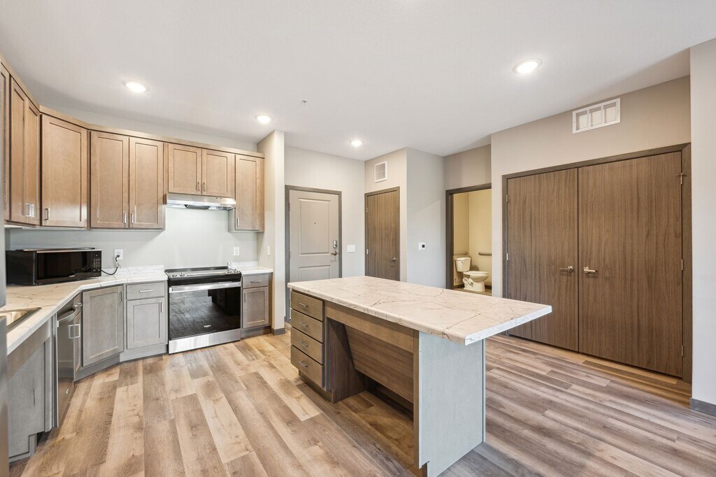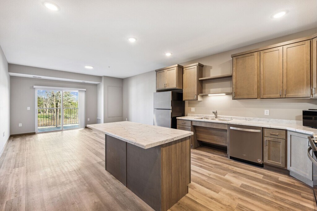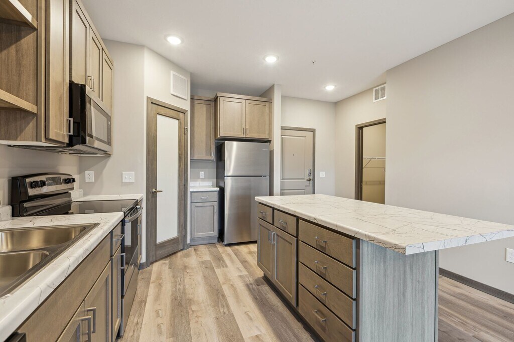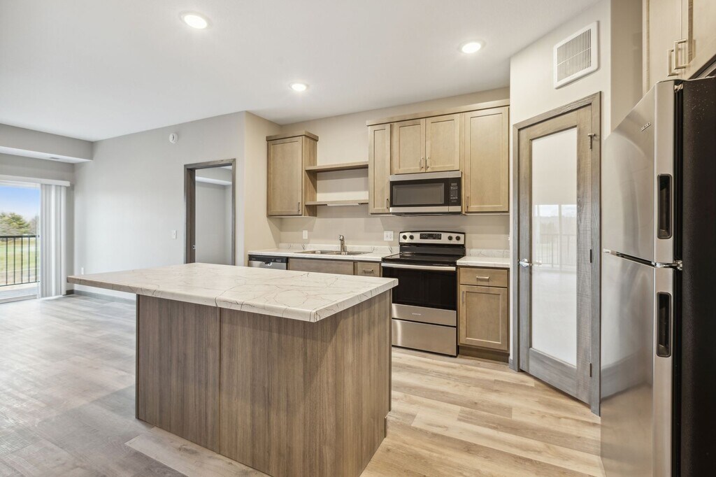 Welcome to Fairway Ridge Estates, where modern sophistication meets unparalleled convenience in the heart of Becker, MN. This beautifully designed, handicapped-accessible one-bedroom unit combines style and functionality to create a comfortable, easy-living space. The expansive bathroom features a luxurious roll-in shower with a sleek, barrier-free entry, ensuring effortless access and plenty of room to move around. Thoughtfully designed for accessibility, the bathroom includes ample storage with modern, easy-to-reach cabinetry. The open-concept kitchen is a dream, boasting a spacious island that not only provides additional counter space for meal prep but also serves as a welcoming spot for dining or entertaining. The kitchen is equipped with high-end appliances and generous cabinetry for all your cooking essentials. A front-loading washer and dryer are tucked conveniently within the unit, offering ultimate convenience and efficiency. This stunning unit offers a harmonious blend of sophisticated design and practical accessibility features, ensuring a seamless and comfortable living experience. Welcome Home! Fees & Deposit Information: Application Fee- $45 per person Administrative Fee- $100 per household Deposit- Equals 1/2 of First Months' Rent (unless conditionally approved, then a co-signer or higher deposit may be required. Utilities: Utilities paid by Landlord: Water/Sewer, Trash. Utilities Paid by Resident: All utilities not provided by Landlord. Renter's Insurance: Renter's Insurance is Required, with minimum $100,000 liability coverage. If valid insurance is not provided and kept updated with management, household will be enrolled in Liability Coverage for an additional monthly fee for $15.00.