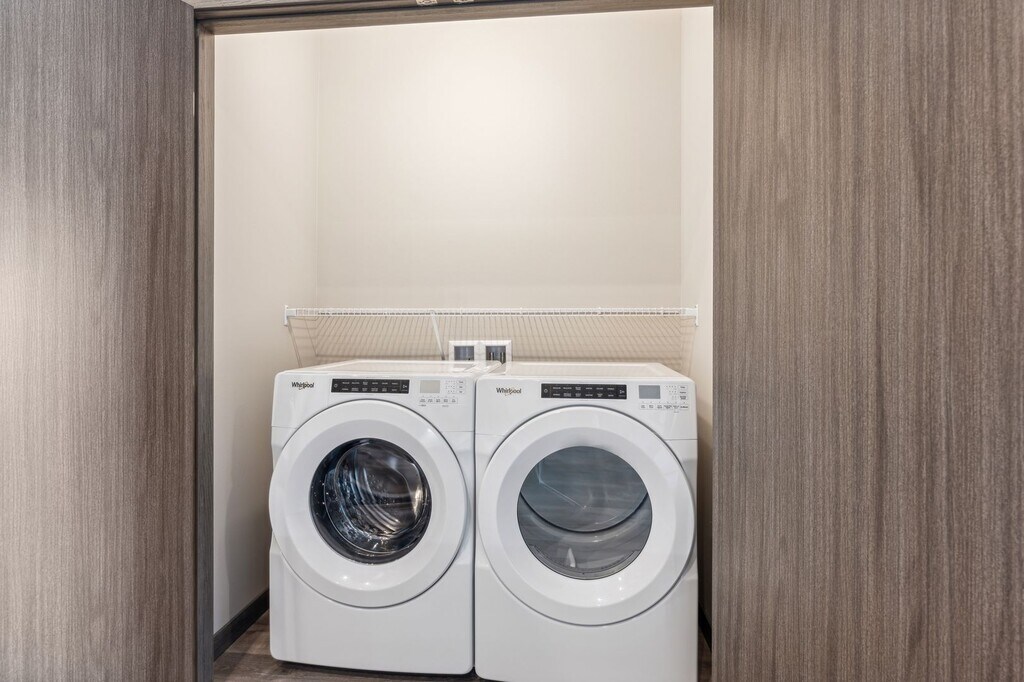 This stunning 2-bedroom apartment boasts a spacious and inviting open-concept layout, where the living and dining areas effortlessly flow into each other, creating an airy and expansive feel. Large windows flood the space with natural light, highlighting the contemporary finishes throughout. The sleek, modern kitchen is the heart of the home, featuring a stylish center island with plenty of space for meal prep, casual dining, and entertaining guests. Both bedrooms are generously sized and include luxurious walk-in closets, providing ample storage and a touch of elegance. The unit also features the added convenience of an in-unit washer and dryer, allowing you to tackle laundry with ease. High-end flooring, custom cabinetry, and premium fixtures throughout the apartment combine to offer a sophisticated living experience. With its perfect blend of functionality, style, and comfort, this apartment is ideal for those seeking both convenience and modern elegance. Welcome Home! Fees & Deposit Information: Application Fee- $45 per person Administrative Fee- $100 per household Deposit- Equals 1/2 of First Months' Rent (unless conditionally approved, then a co-signer or higher deposit may be required. Utilities: Utilities paid by Landlord: Water/Sewer, Trash. Utilities Paid by Resident: All utilities not provided by Landlord. Renter's Insurance: Renter's Insurance is Required, with minimum $100,000 liability coverage. If valid insurance is not provided and kept updated with management, household will be enrolled in Liability Coverage for an additional monthly fee for $15.00.
