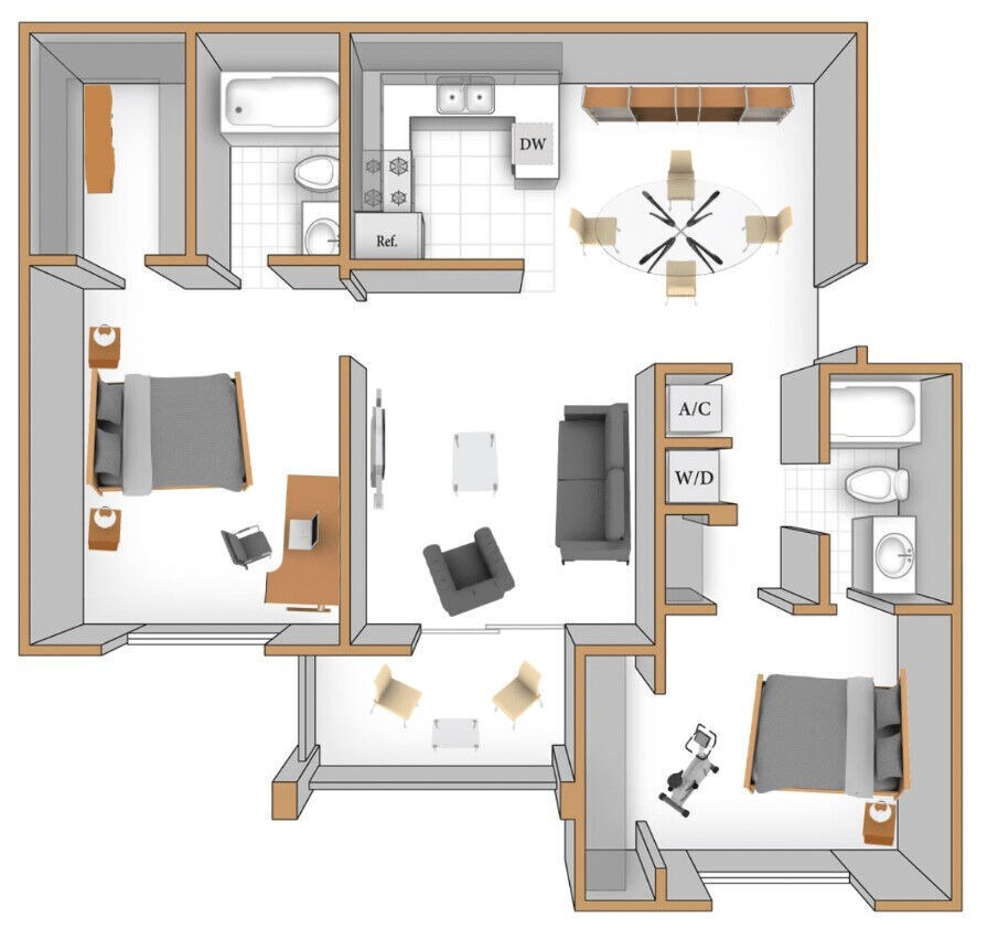 2 Beds, 2 Baths, 947 sq ftAvailable NowModel Gallery