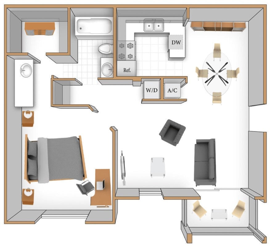 1 Bed, 1 Bath, 805 sq ftAvailable NowModel Gallery