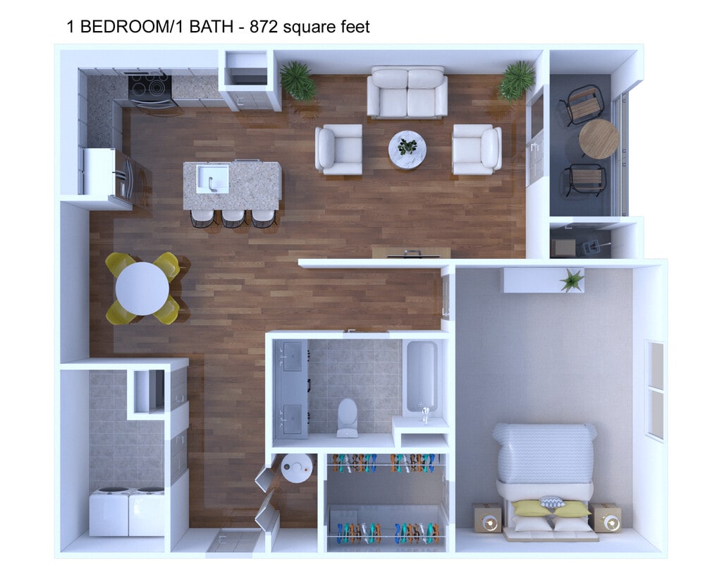 1 Bed, 1 Bath, 872 sq ftModel Gallery