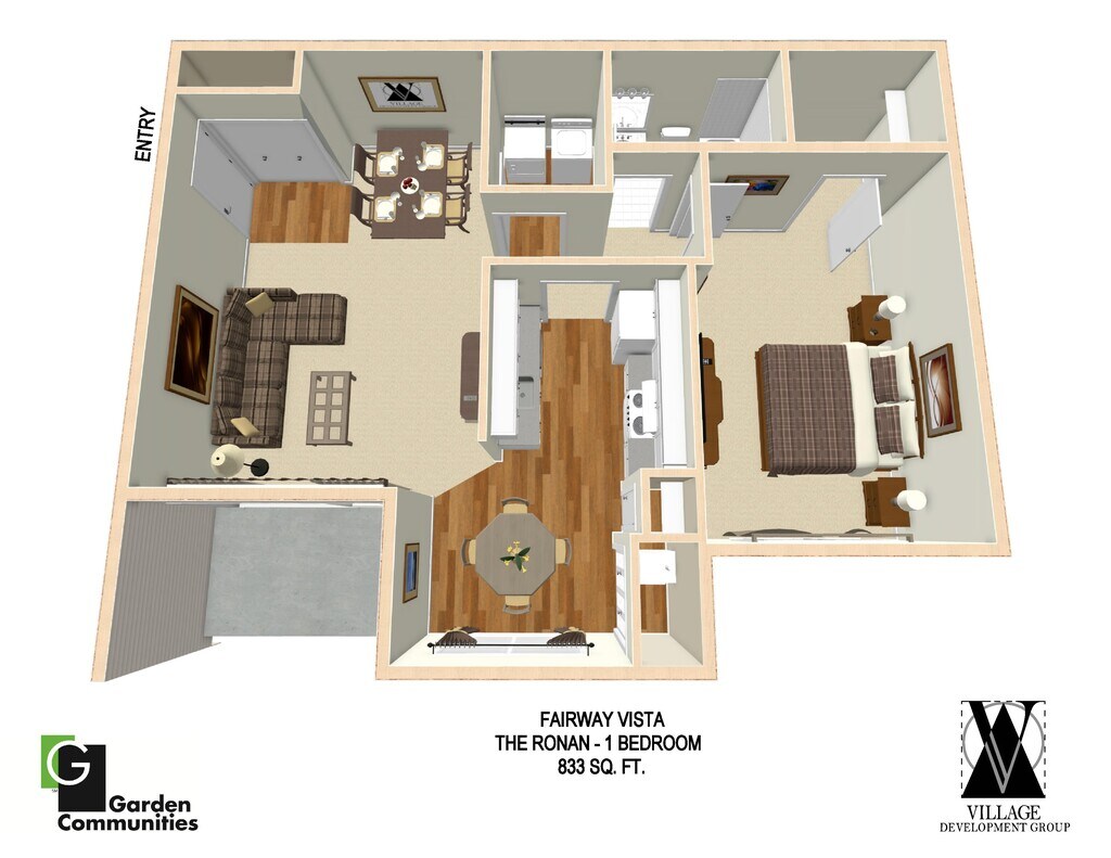 One Bedroom - Floorplan 1 Fairway Vista II - The Oliver