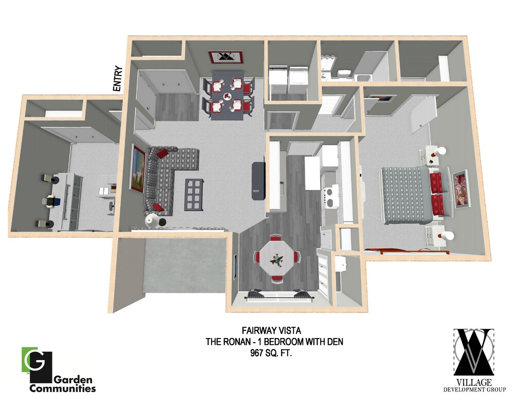 One Bedroom w/ Den - Floorplan 1 2 Bedrooms
