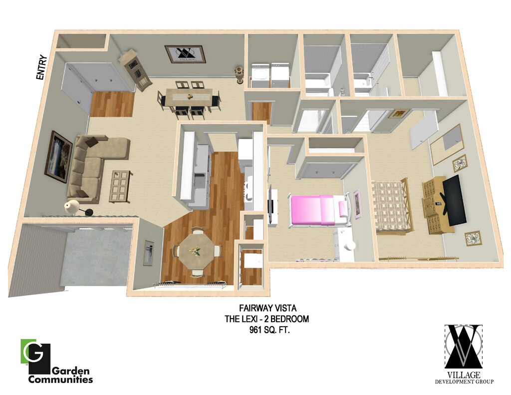 2 Beds, 2 Baths, 961 sq ftAvailable NowModel Gallery