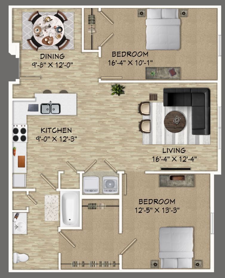 2 Beds, 1 Bath, 974-1106 sq ftAvailable NowModel Gallery