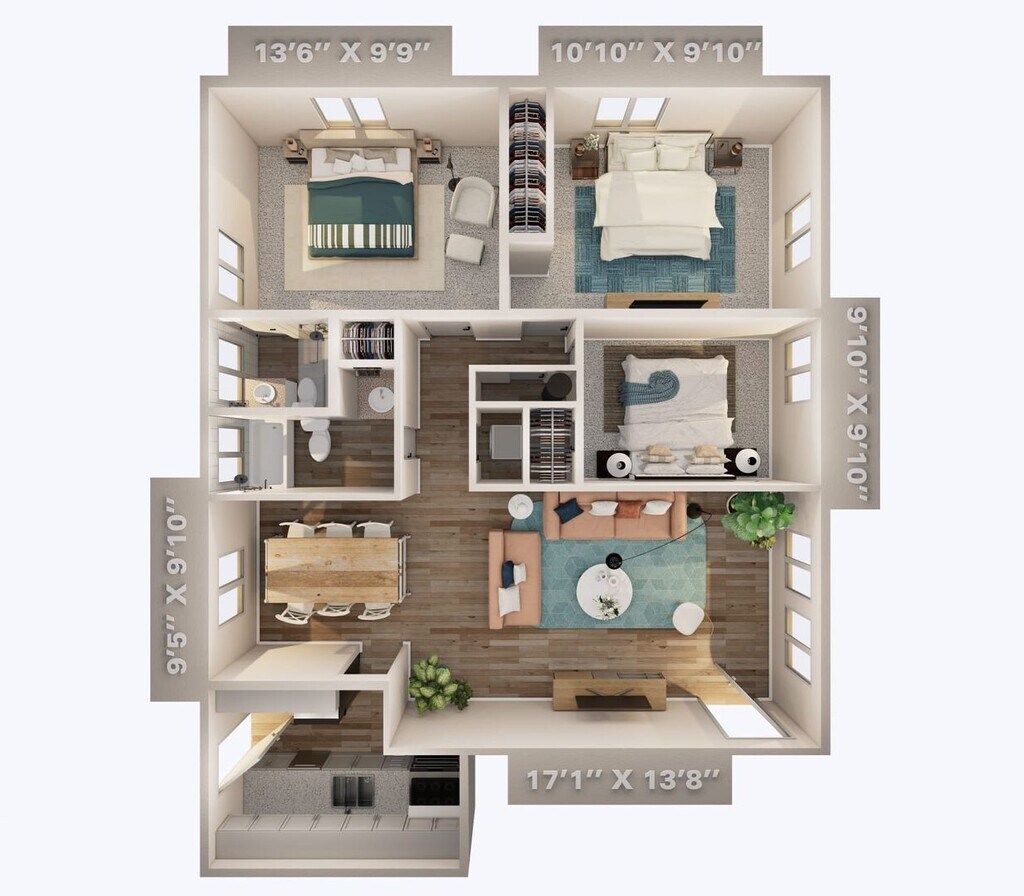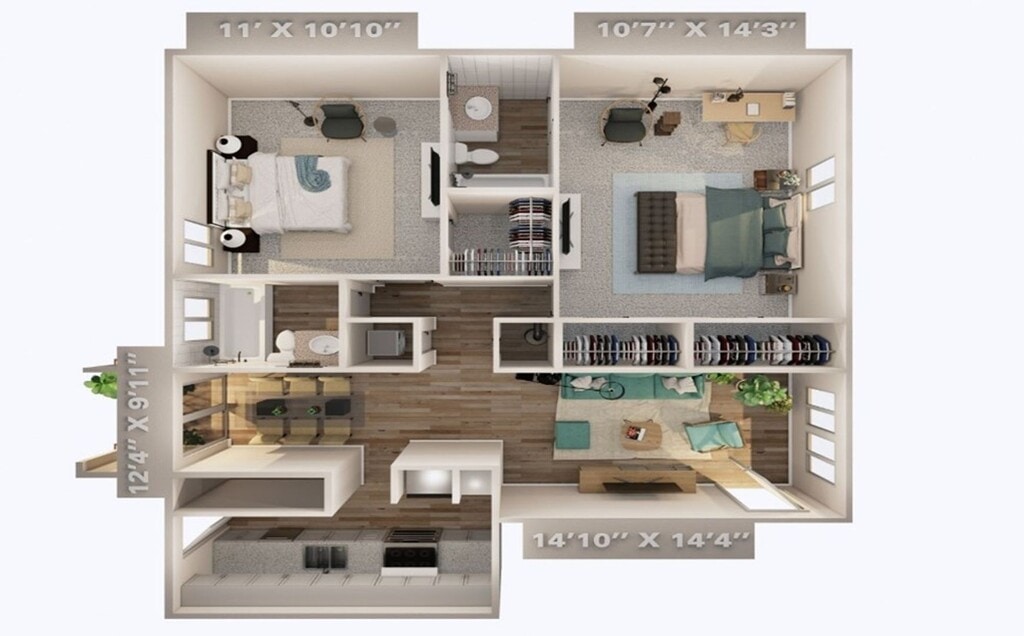 Apartment Model: Camelia$9952 Bedroom, 1 Bath, 935 sq ftAvailable NowFloorplansPhotos![]()