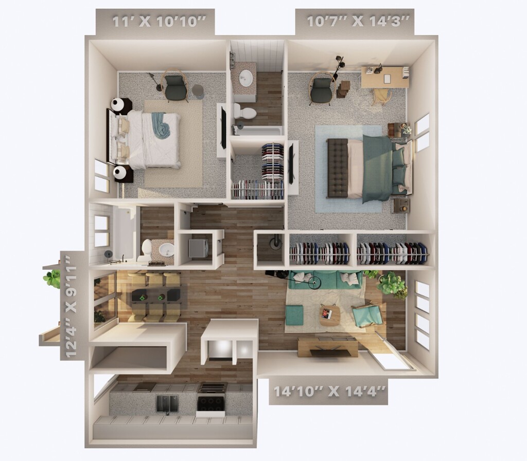 2 Beds, 2 Baths, 1000 sq ftAvailable NowModel Gallery