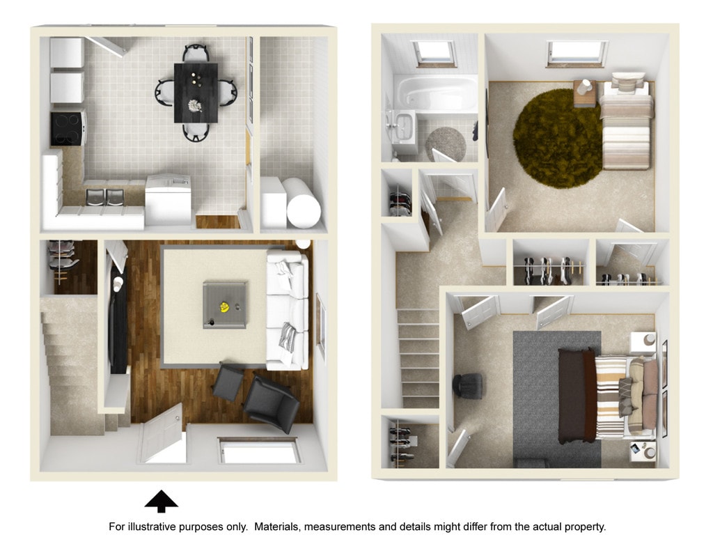Apartment Model: Two Bedroom TownhomeFrom $9052 Bedroom, 1 Bath, 800 sq ftAvailable Now![]()