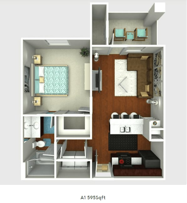 Apartment Model: A1From $1,1611 Bedroom, 1 Bath, 595 sq ftAvailable Now![]()