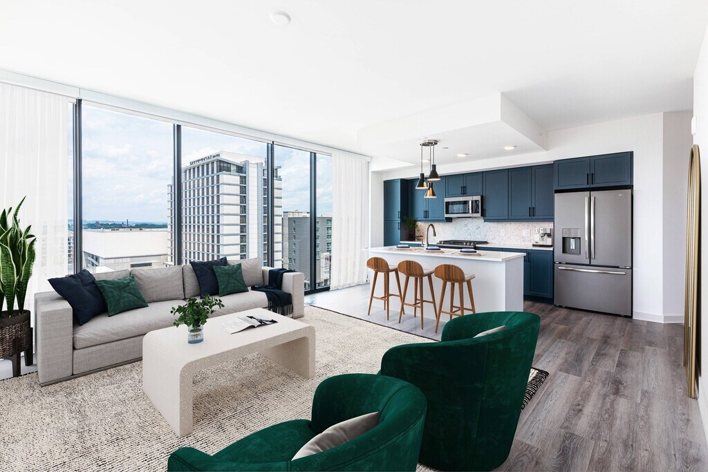 Fallyn offers a one-of-a-kind living experience in the heart of Midtown, boasting a curated collection of elevated studio, one, two, and three-bedroom apartments and penthouses. With Hotel Fraye on the premises, Fallyn offers generous perks and shared spaces that entertain residents and hotel guests alike. The expansive pool area includes a spacious lounge and service bar, and the ground-floor restaurant, Gathre, offers good fare, fresh cocktails, and a great scene. Community amenities include a two-story, fully stocked co-working space, expansive fitness center, and a top-floor club room and deck with streetscape views. At Fallyn, memorable moments and meticulous service go hand-in-hand.