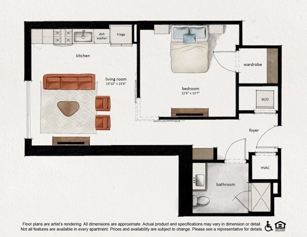 Studio, 1 Bath, 587 sq ftAvailable NowModel Gallery