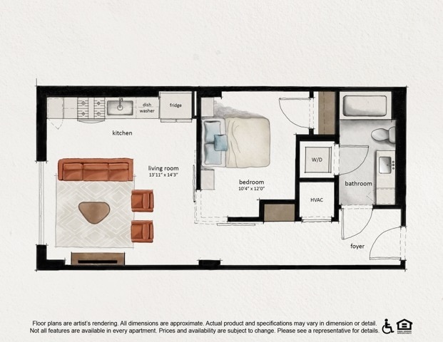 Apartment Model: S03From $1,565Studio, 1 Bath, 572 sq ftAvailable NowFloor plans are artist's rendering. All dimensions are approximate. Actual product and specifications may vary in dimension or detail. Not all features are available in every rental home. Prices and availability are subject to change. Base rent is based on monthly frequency. Additional fees may apply, such as but not limited to package delivery, trash, water, amenities, etc. Deposits vary. Please see a representative for details.