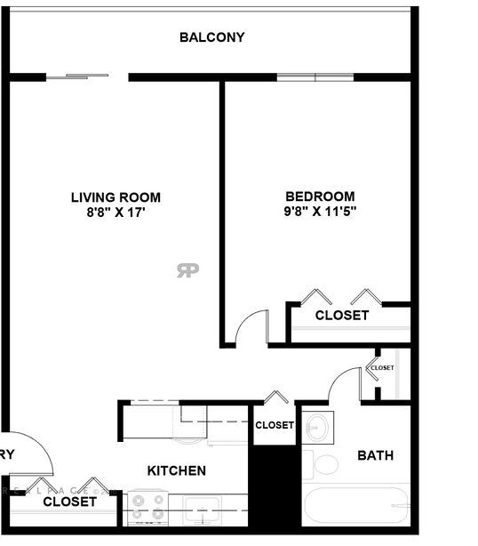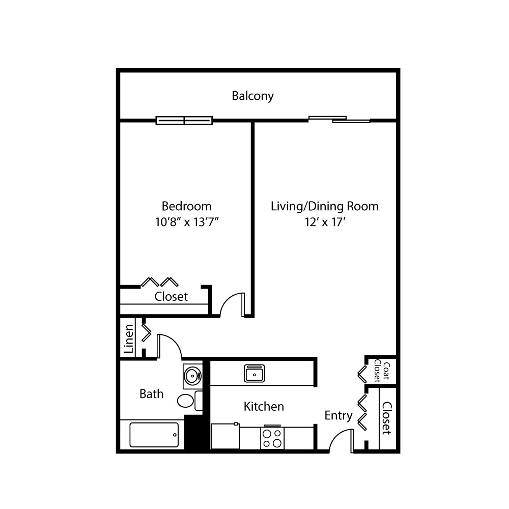 Income-Based 1 Bedroom Elevator - Floorplan 1 ![]()