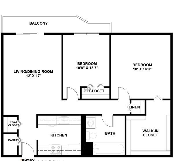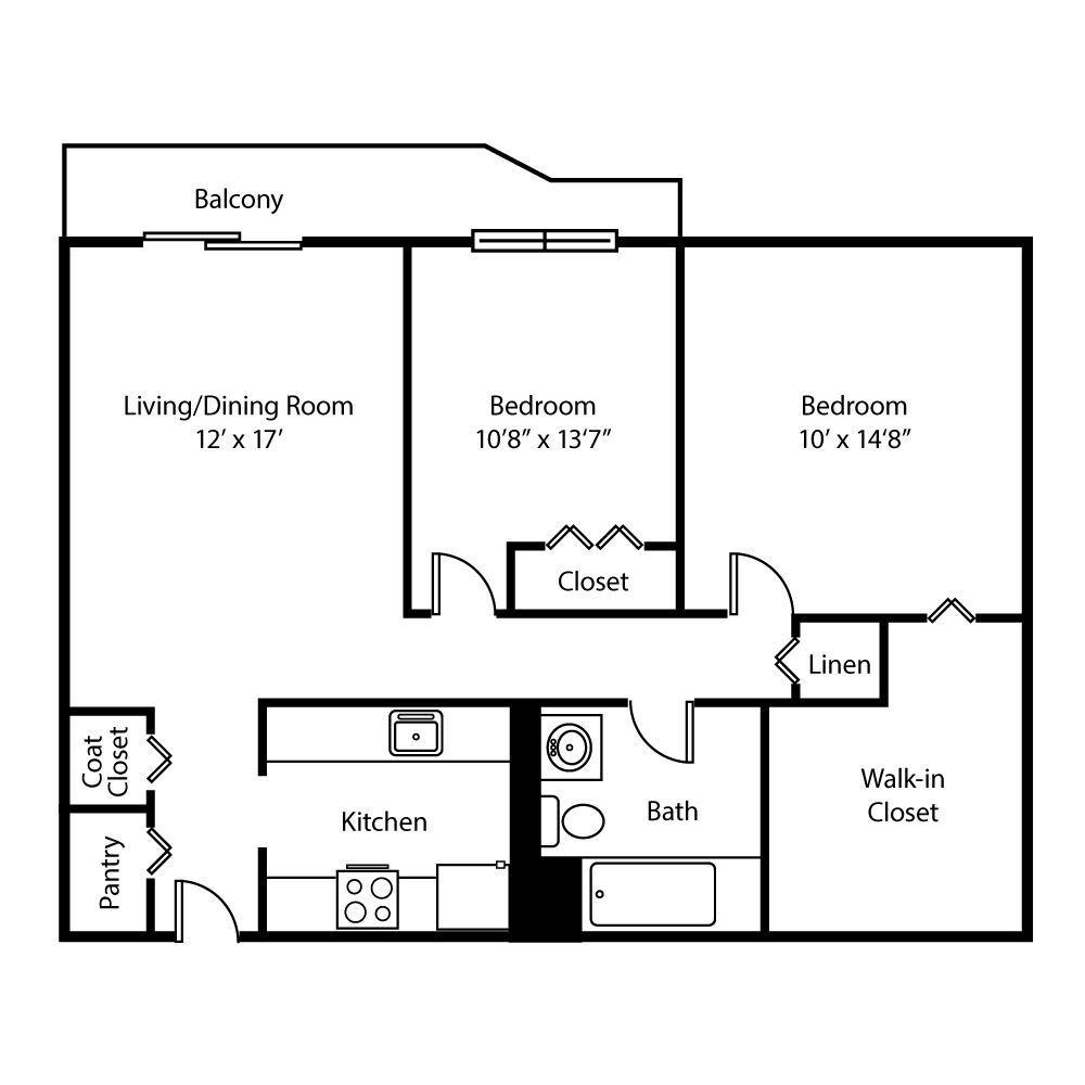 Income-Based 1 Bedroom Elevator - Floorplan 2 2 Bedrooms
