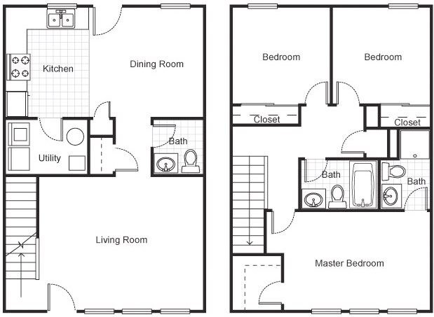 Apartment Model: Three Bed, Two and a Half Bath3 Bedroom, 2.5 Bath, 1265 sq ftUnavailable![]()