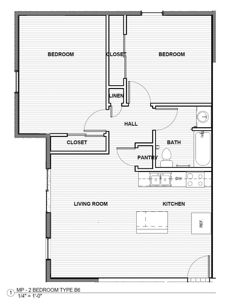 2 Beds, 1 Bath, 809 sq ftModel Gallery