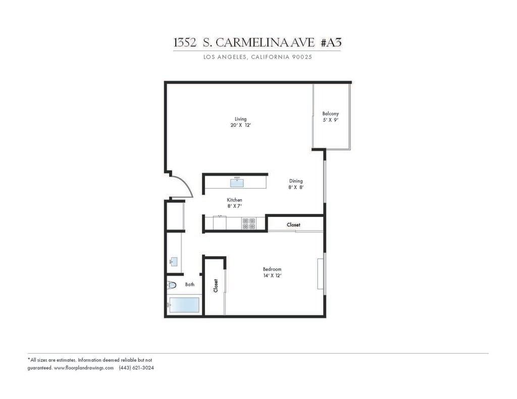 A3 - Floorplan 1 Apartment Unit: 203Apartment Model: A3$3,1251 Bedroom, 1 Bath, 860 sq ftAvailable February 11, 20262 Bedrooms