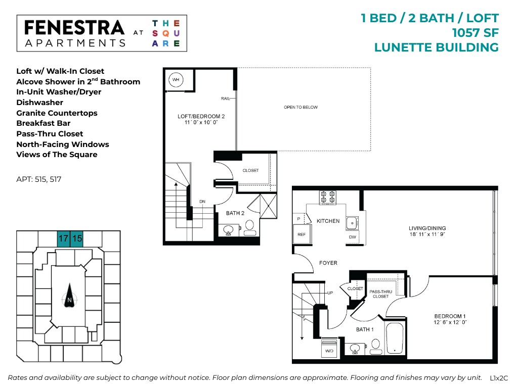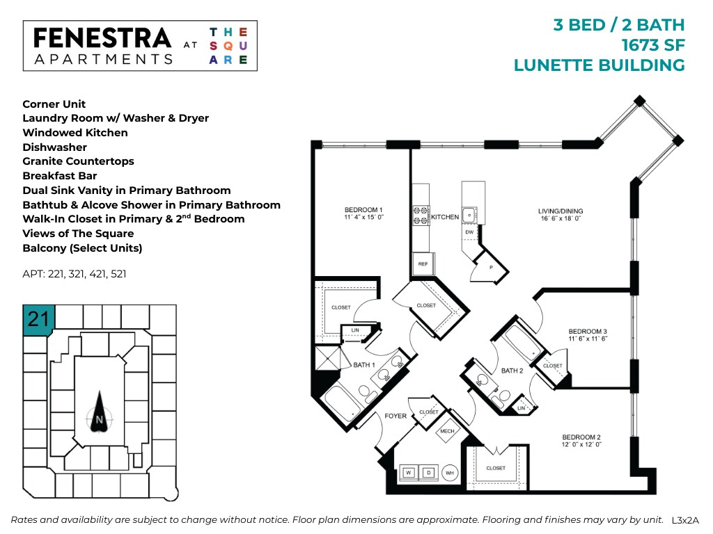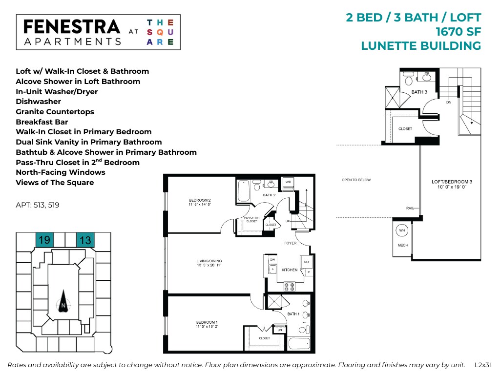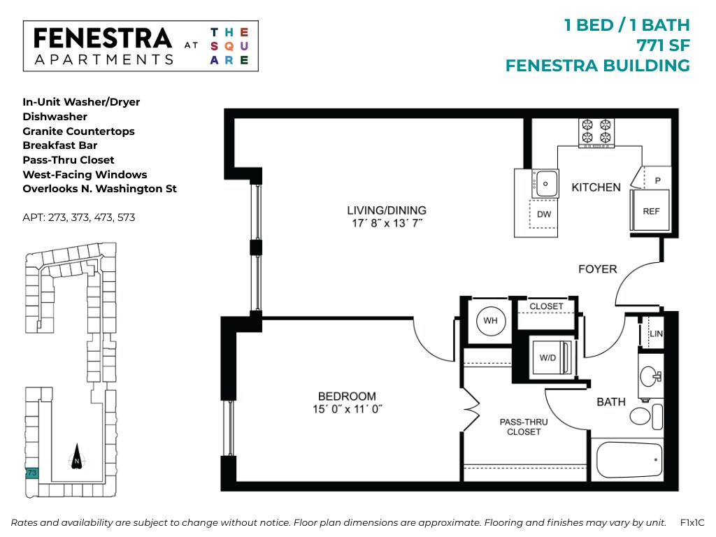 Fenestra at The Square offers Studio to 3 Bedroom apartments starting from $1,896 and having 552–1,673 sq ft. Here is the current pricing and availability: