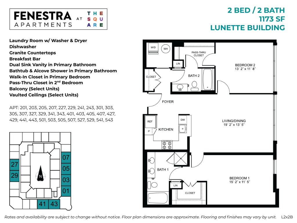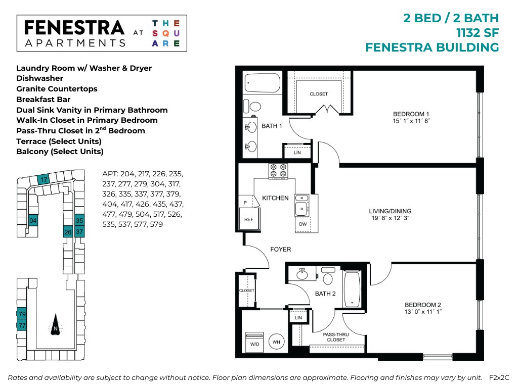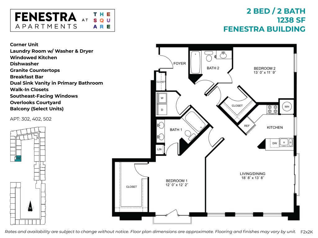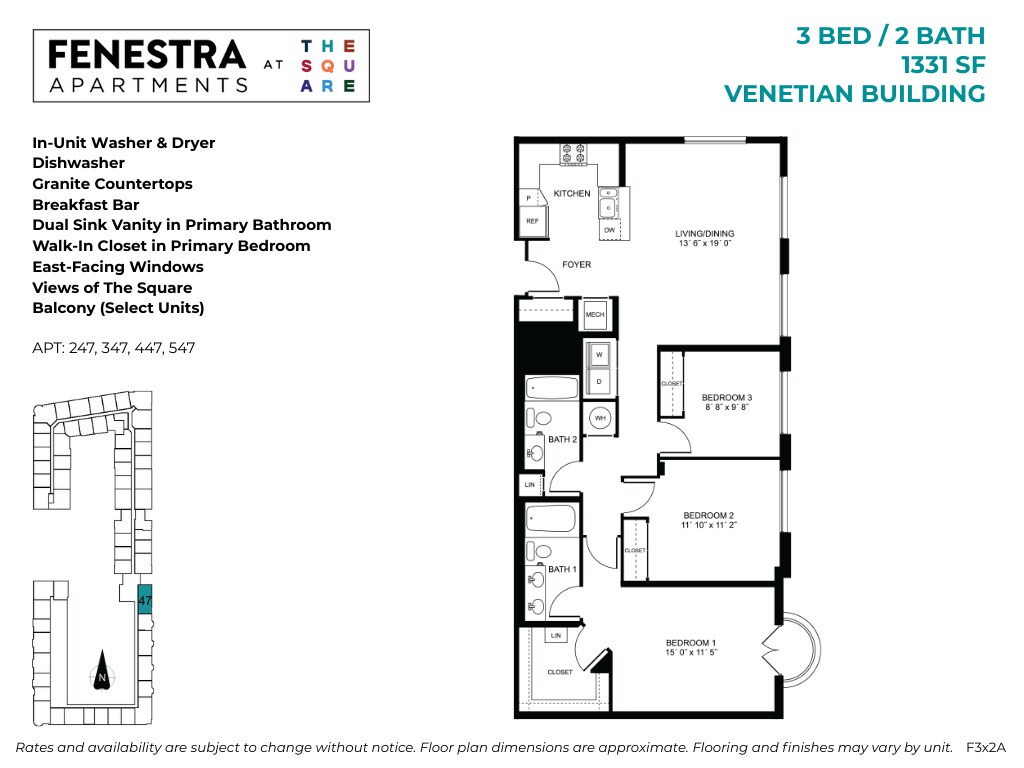 Fenestra at The Square offers Studio to 3 Bedroom apartments starting from $1,896 and having 552–1,673 sq ft. Here is the current pricing and availability: