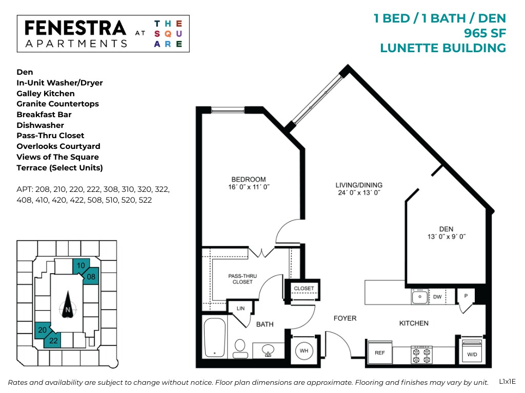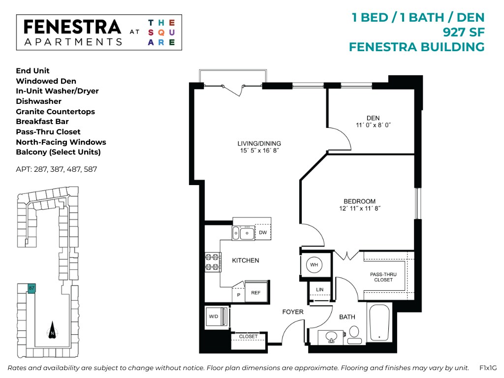 Fenestra - 1 Bed / 1 Bath / Den - Floorplan 1 Floor plans are artist's rendering. All dimensions are approximate. Actual product and specifications may vary in dimension or detail. Not all features are available in every rental home. Please see a representative for details.