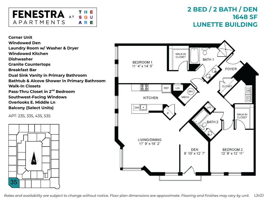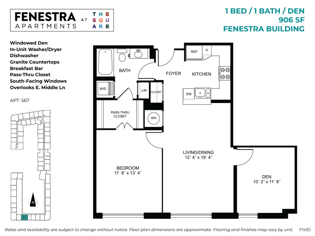 Fenestra - 1 Bed / 1 Bath / Den - Floorplan 3 Floor plans are artist's rendering. All dimensions are approximate. Actual product and specifications may vary in dimension or detail. Not all features are available in every rental home. Please see a representative for details.