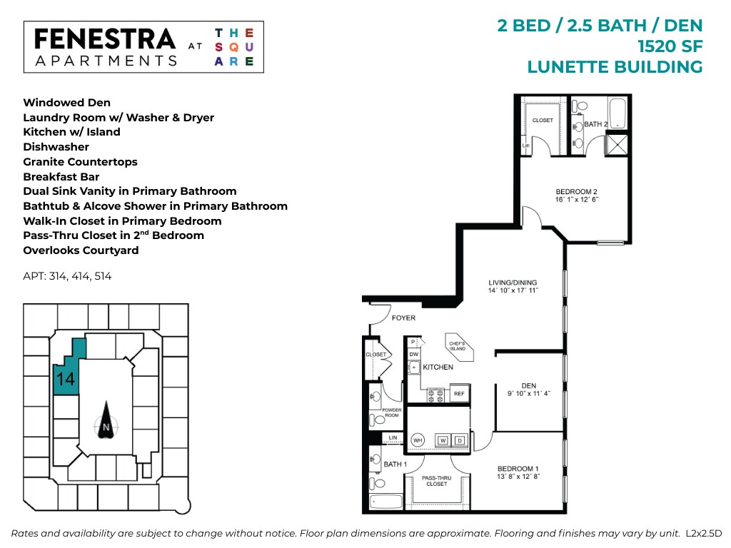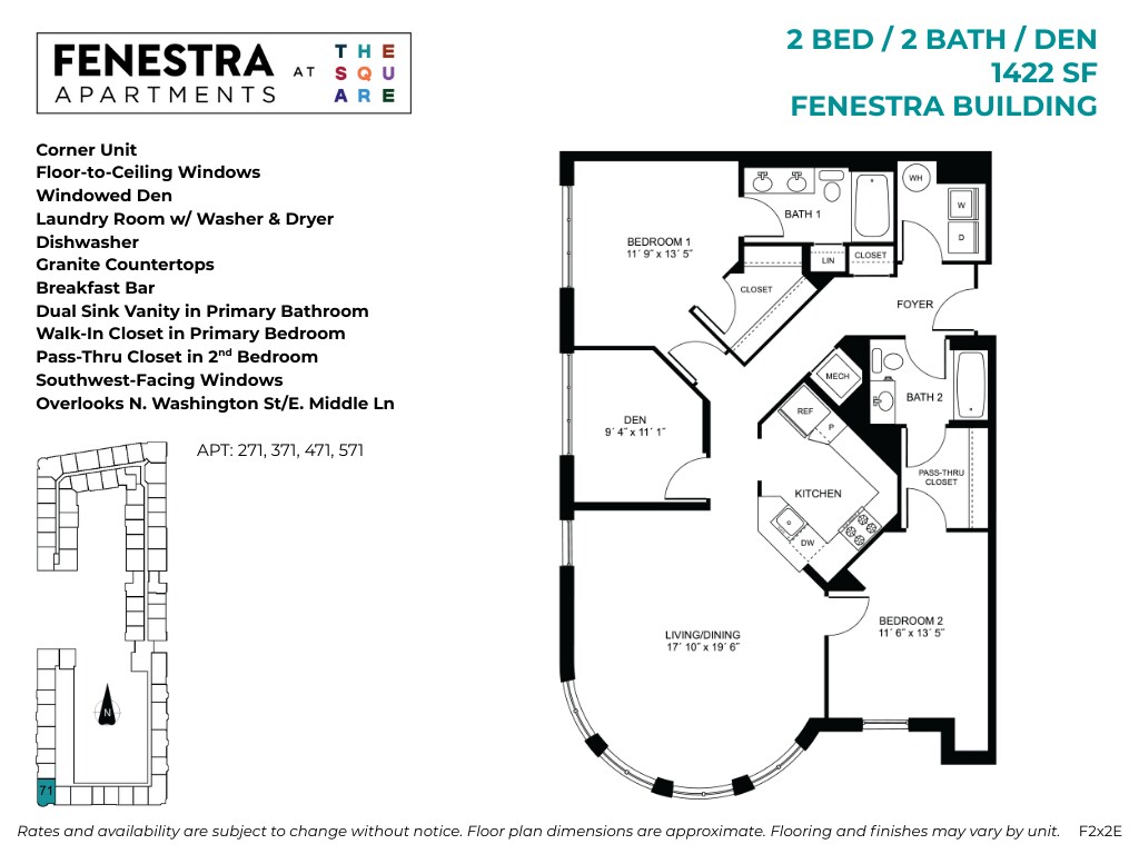 Fenestra - 1 Bed / 1 Bath / Den - Floorplan 2 Floor plans are artist's rendering. All dimensions are approximate. Actual product and specifications may vary in dimension or detail. Not all features are available in every rental home. Please see a representative for details.