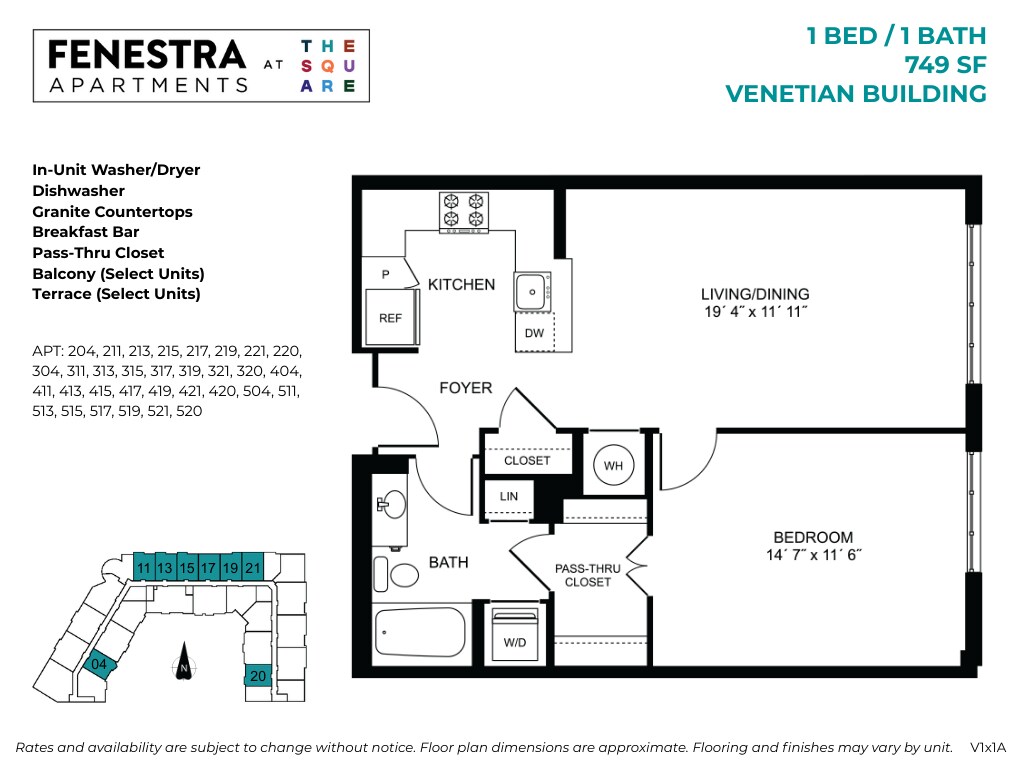 Fenestra - 1 Bed / 1 Bath - Floorplan 4 Floor plans are artist's rendering. All dimensions are approximate. Actual product and specifications may vary in dimension or detail. Not all features are available in every rental home. Please see a representative for details.