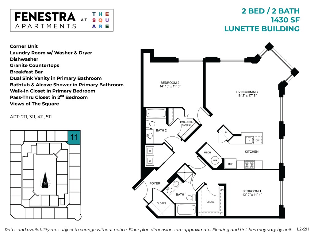 Fenestra - 1 Bed / 1 Bath - Floorplan 2 Floor plans are artist's rendering. All dimensions are approximate. Actual product and specifications may vary in dimension or detail. Not all features are available in every rental home. Please see a representative for details.