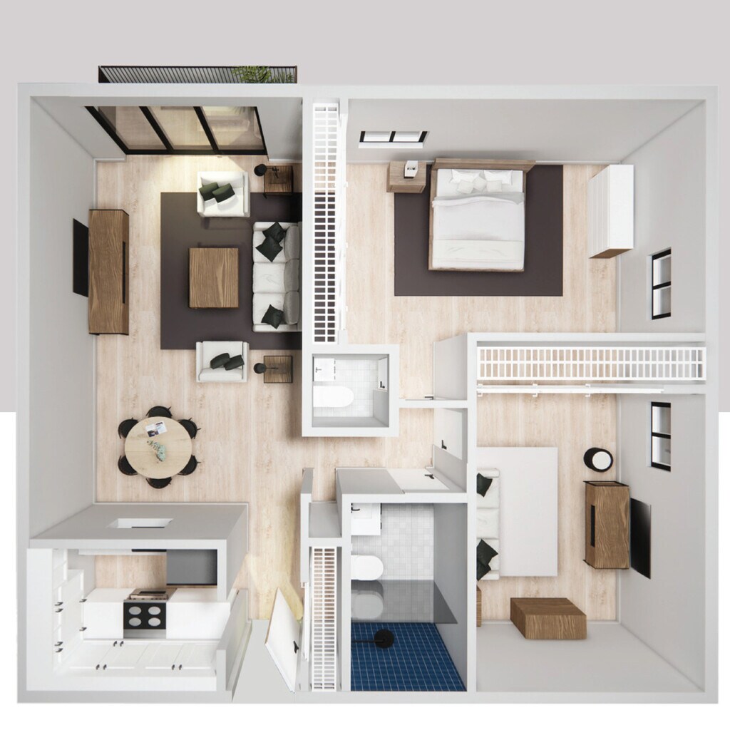 2 Beds, 1.5 Baths, 950 sq ftPlus FeesAvailable NowModel Gallery