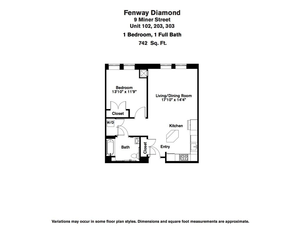 Fenway Diamond at 9 Miner Street offers Studio to 1 Bedroom apartments starting from $3,400 and having 494–781 sq ft. Here is the current pricing and availability: