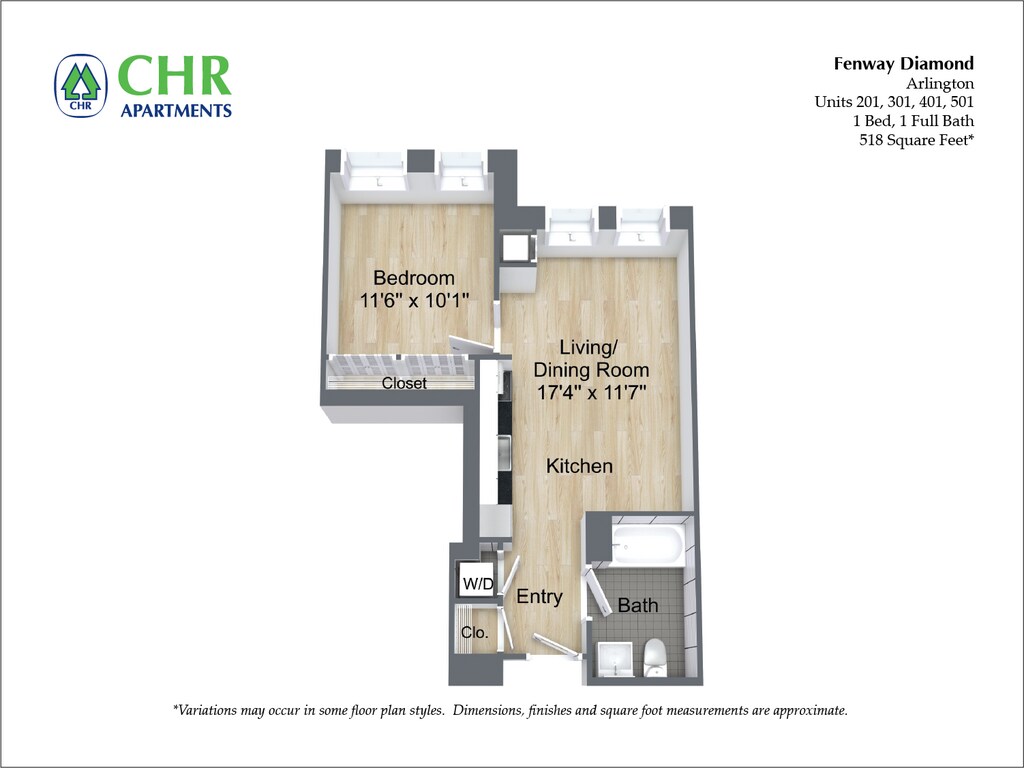 Studio/1 Bath - Floorplan 2 1 Bedroom