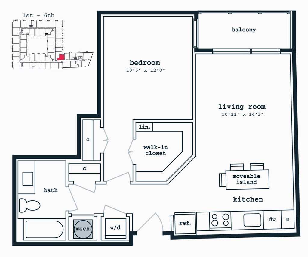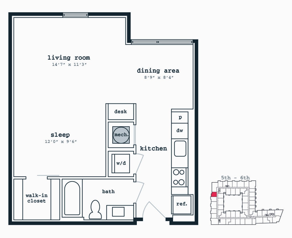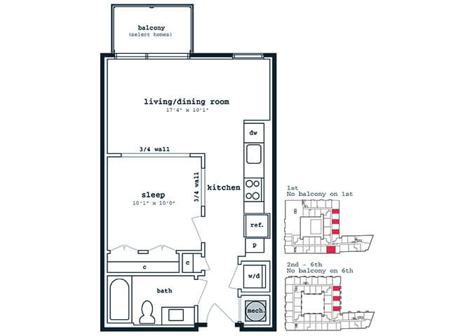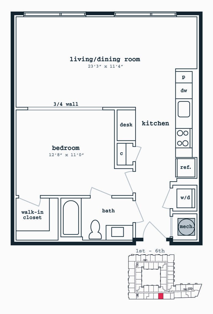 Studio, 1 Bath, 529-547 sq ftAvailable NowModel Gallery
