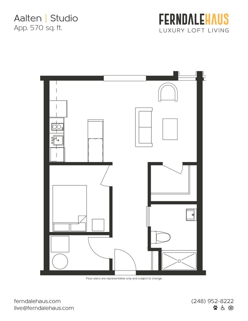 Studio to 2 Bedroom Apartments at FerndaleHaus Lofts currently range from $1,623 to $4,137