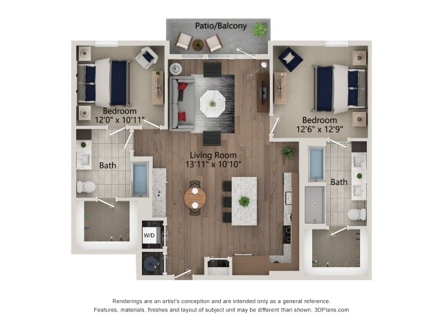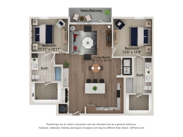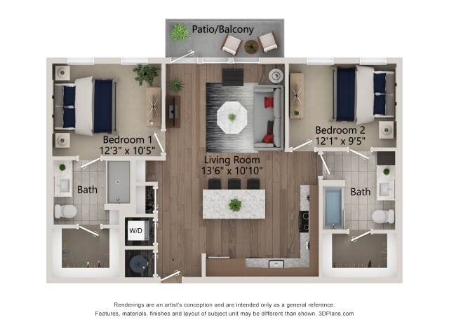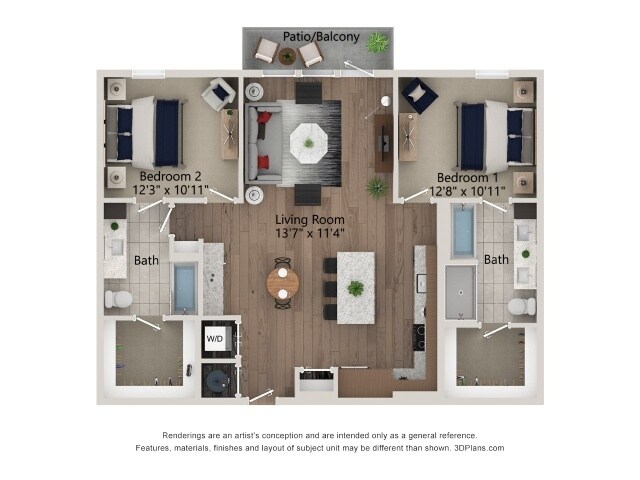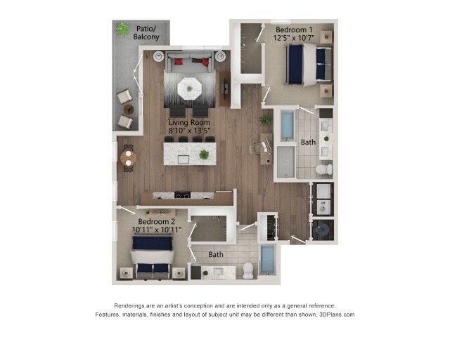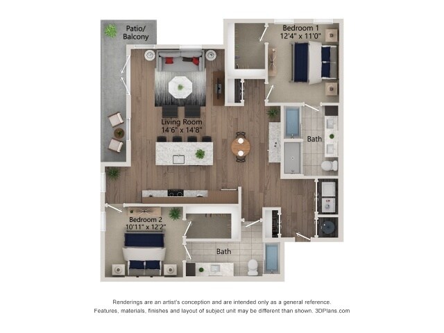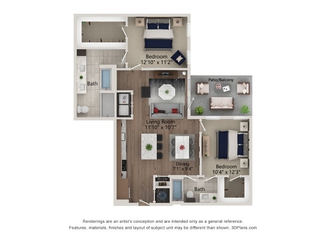 2 Beds, 2 Baths, 1222 sq ftModel Gallery