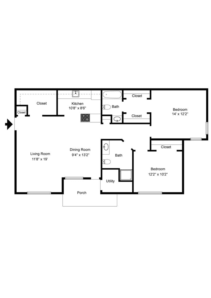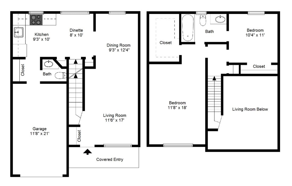 2 Bedroom Townhome - Floorplan 2 ![]()